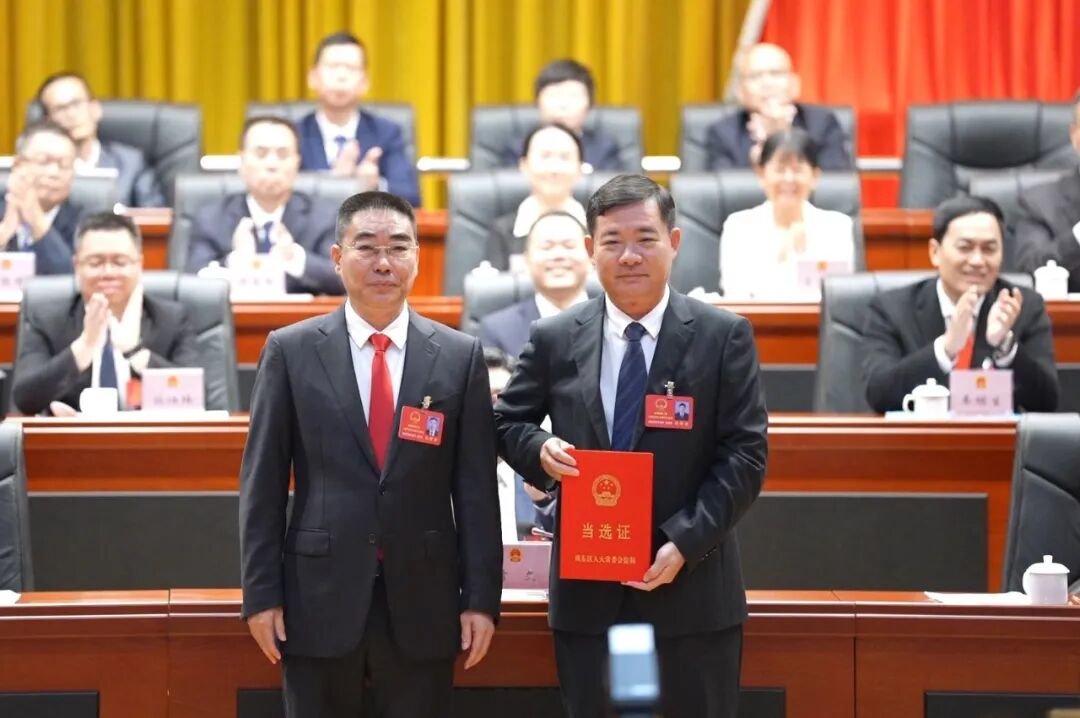 △区人大常委会主任黄济勇为新当选的皇冠体育,皇冠体育平台区人民政府区长林楷涌颁发证书