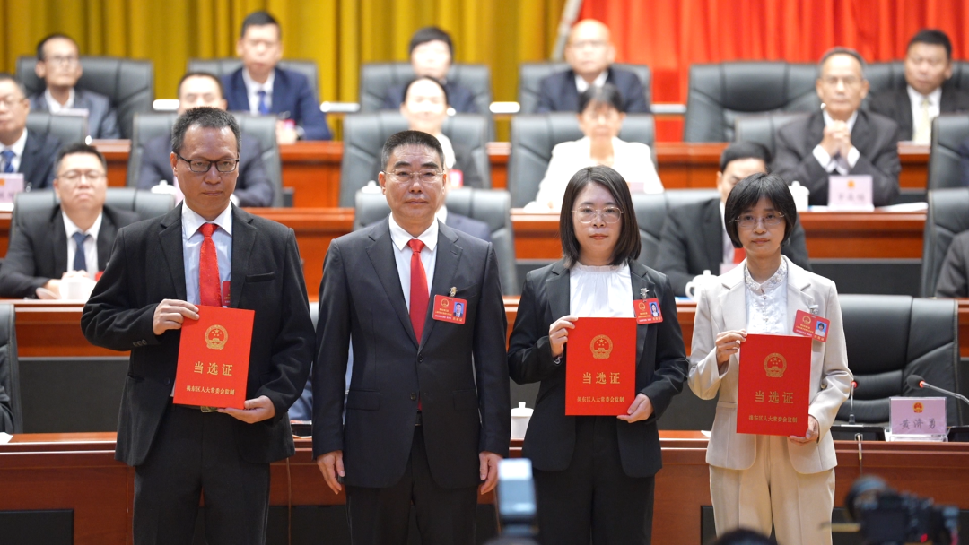 △区人大常委会主任黄济勇为新当选的皇冠体育,皇冠体育平台区人大常委会委员刘旭娜、洪晓芬、江馥青颁发证书